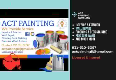 Tired of seeing the same color of the interior / Exterior of your house, Personalize it with us here with A-C-T Painting offering a quality and guaranteed service.
